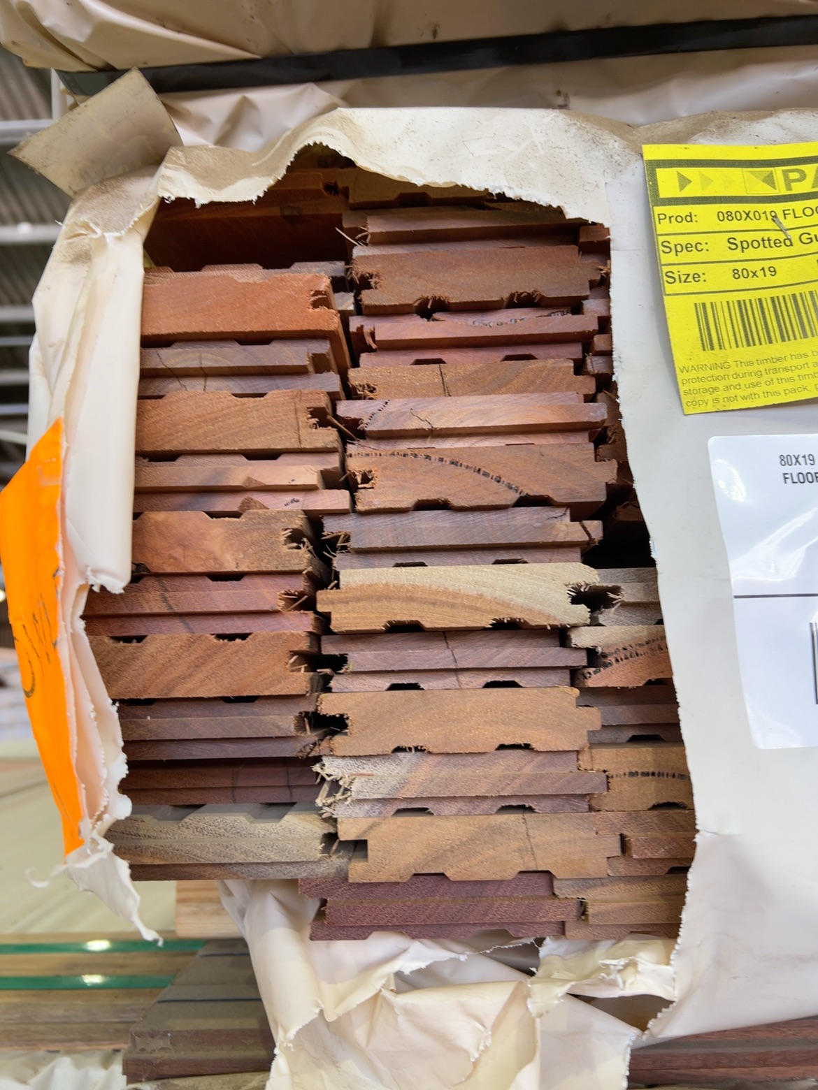 86X19 FEATURE GRADE SPOTTED GUM DECKING (PACK CONSISTS OF RANDOM SHORT LENGTHS)