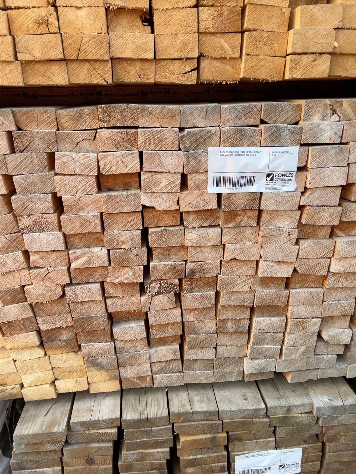 PACK OF 90X45 PINE (PACK IS WEATHERED AND MAY CONTAIN MOULD) SOLD AS IS