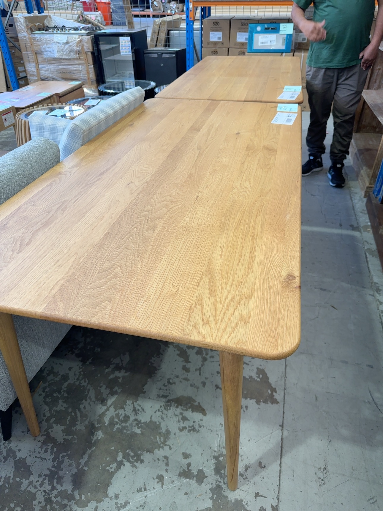 FURNITURE RETAILER CLOSURE – 1800MM X 900MM NATURAL OAK DINING TABLE WITH CURVED ENDS, SOLD AS IS