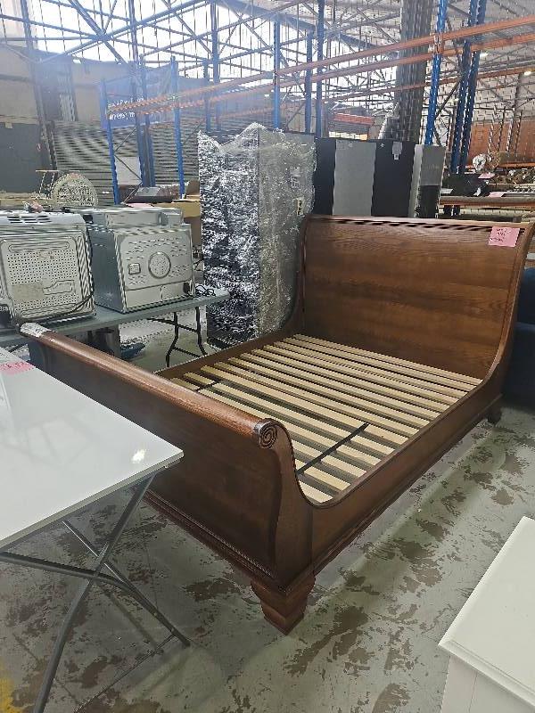 NEW ASH WOOD SLEIGH QUEEN SIZE BED RRP$2000 AU1208