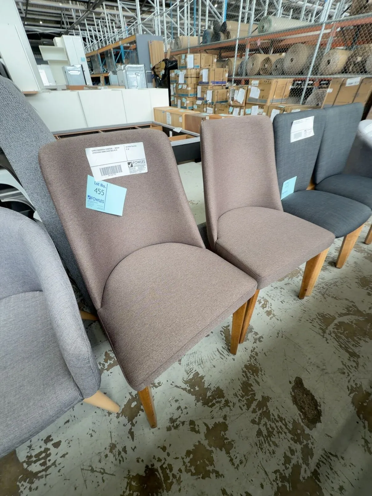 SAMPLE COMMERCIAL FURNITURE – GREY UPHOLSTERED ARMCHAIR, SOLD AS IS