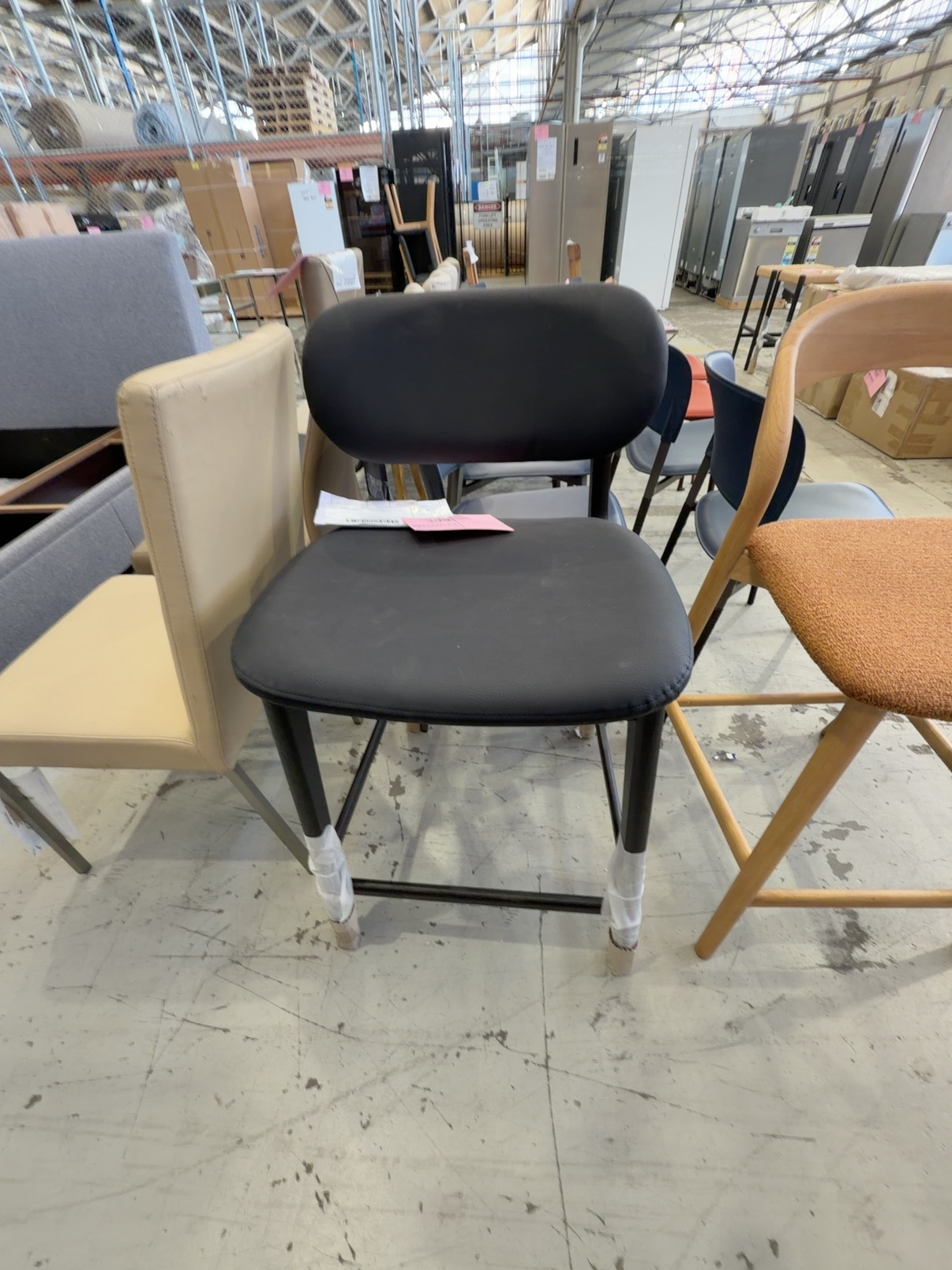 SAMPLE COMMERCIAL FURNITURE – TAUPE LEATHER UPHOLSTERED DINING CHAIR SOLD AS IS