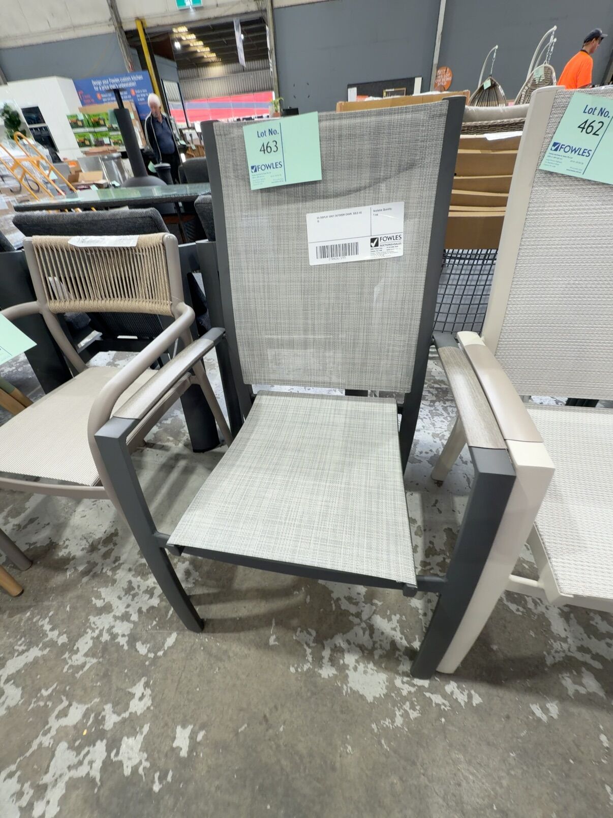 EX DISPLAY GREY OUTDOOR CHAIR, SOLD AS IS