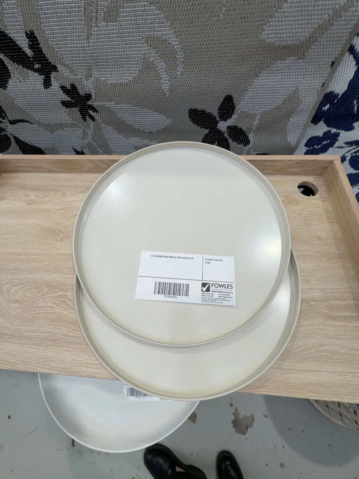 EX STAGING BEIGE METAL TRAY SOLD AS IS